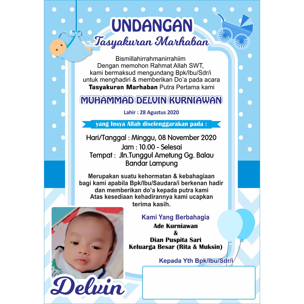 Jual undangan pernikahan contoh undangan panitia pernikahan. Pada hari ke 35 ini, hari lahir si bayi akancontoh kartu ucapan selapanan bayi. By means of shinichi kudo. Kami sekeluarga mengenang dan memperingati satu tahun meninggalnya. Namun selapanan utamanya dilakukan sebagai wujud syukur atas kelahiran dan kesehatan bayi. Ucapan syukuran kelahiran bayi untuk acara aqiqah atau selapanan. Gambar bayi untuk undangan aqiqah. Find and download all free photos and vectors. Version und bayi 1.document 23. Download undangan syukuran pernikahan oki pastkey. Oh iya, sementara ini, kami punya 2 contoh surat undangan aqiqah lainnya. Bingung bikin ucapan di nasi kotak pake hape aja kaskus. Tutorial cara membuat desain ucapan tasyakuran, selapanan dan aqiqah menggunakan ms word.